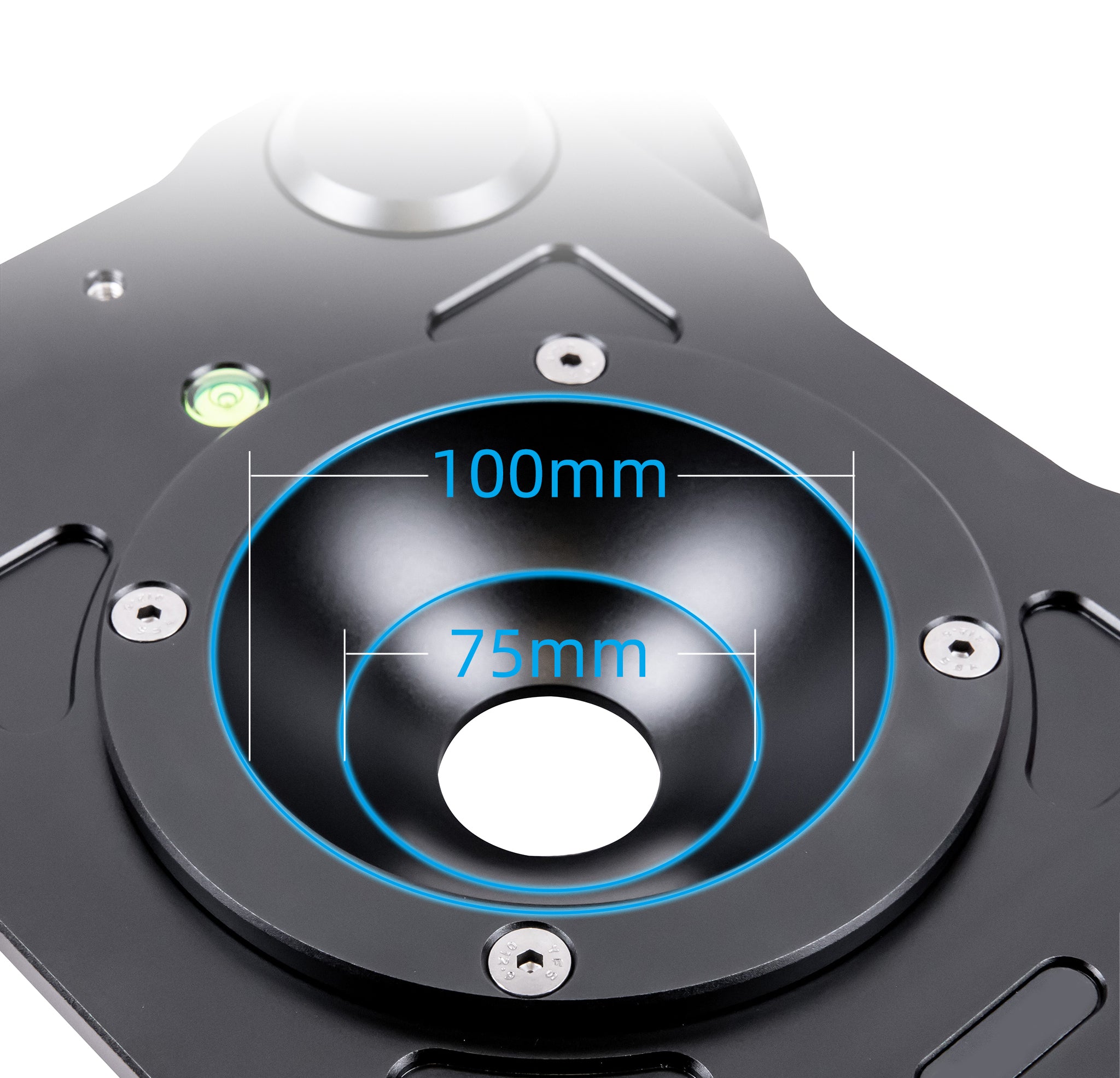 75&100mm bowl mount as standard, it is convenient for user who use professional panoramic head, also can be mounted DSLR ball pan head by fixing flat bowl adapter
