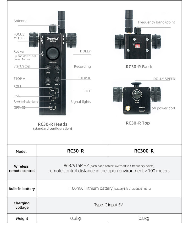 In addition to the stabilizer and camera control interface on the dolly, can also choose an independentstabilizer and camera remote control receiver for more flexible control