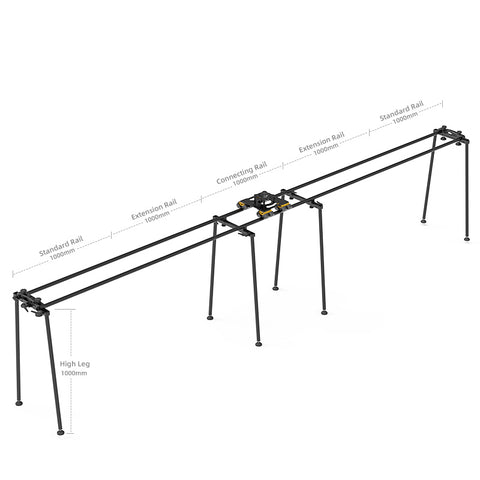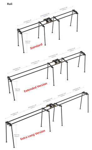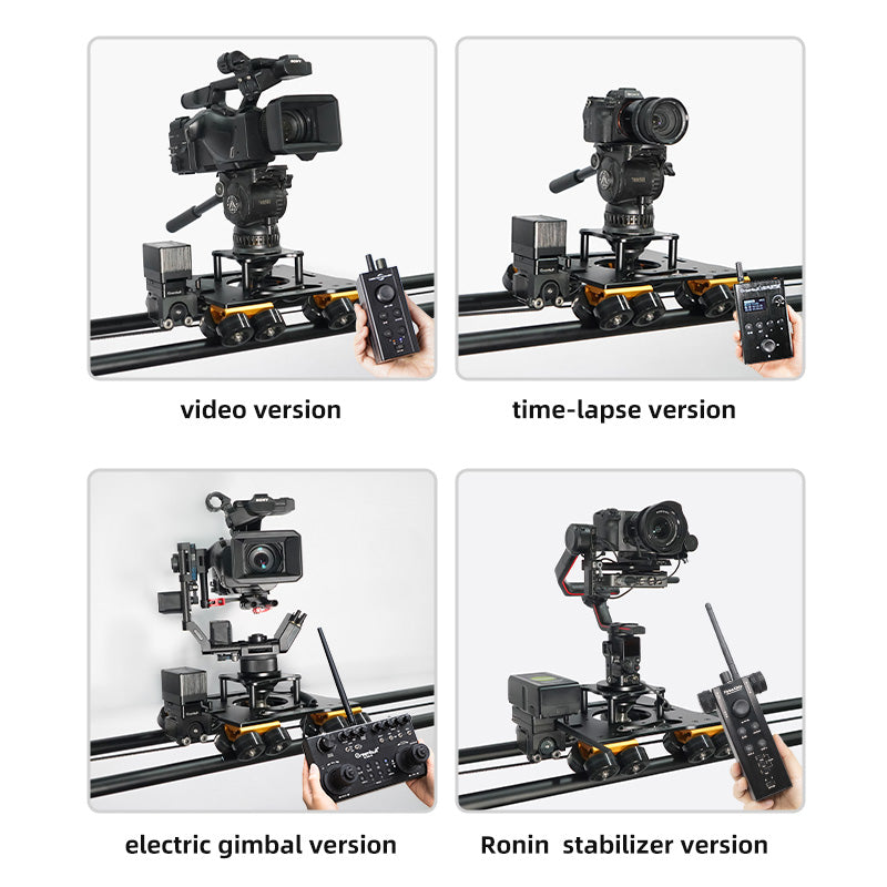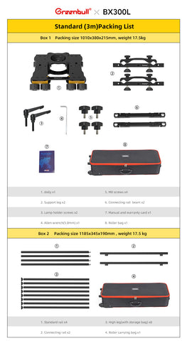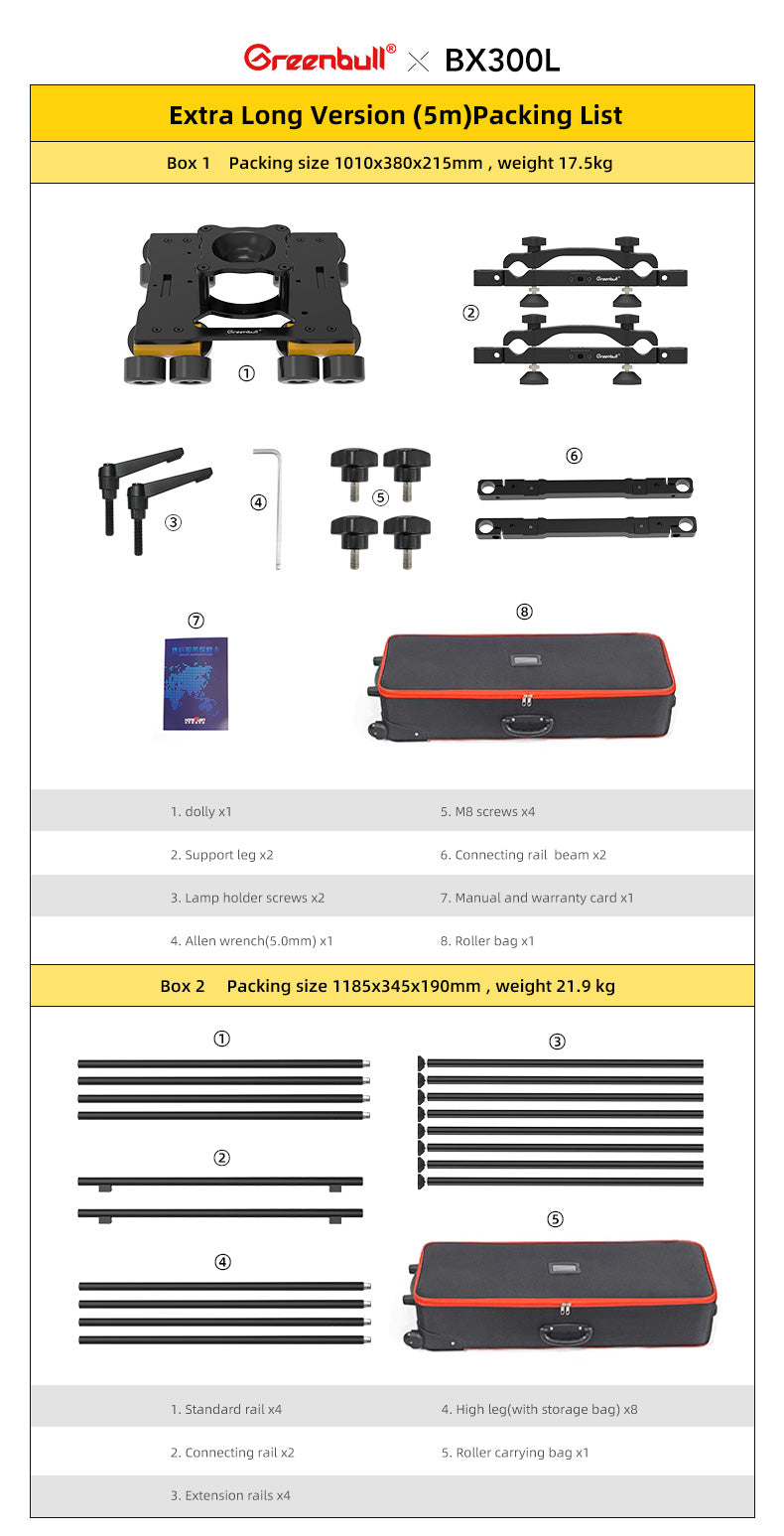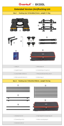 BX300L portable camera slider full length of 5 meters, with 16 wheels dolly,1 meter high legs, payload 70 kg, roller bag storage, easy to carry.Equipped with electronic control system, BX300L can be composed of remote control camera robot. Whether it is film and television creation or live event shooting, it is easy to deal.