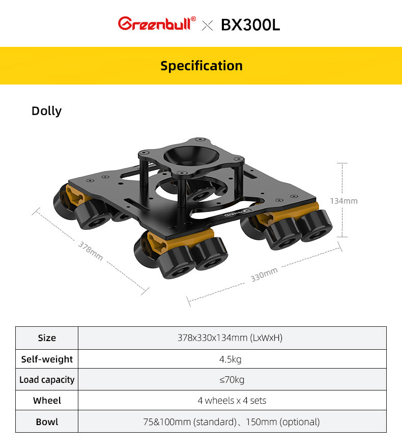 BX300L can be equipped with a variety of electronic control systems from Greenbull to form a remote-controlled camera robot.